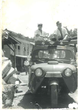 物や人を運ぶのに、当時は三輪車が活躍していました。