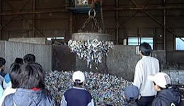 磁石で缶の選別がされるところ~